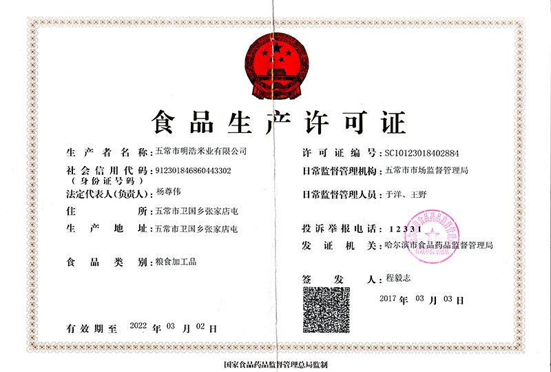 明浩米業(yè) 公司簡介 企業(yè)文化 領(lǐng)導(dǎo)致辭 資質(zhì)榮譽 食品生產(chǎn)許可證 食品經(jīng)營許可證 證明商標準用證 地理標志保護專用標志 共4條記錄 / 共1頁